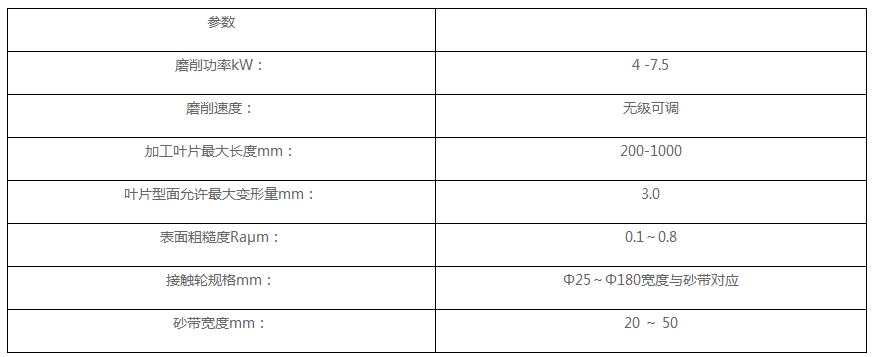 1.專用于復(fù)雜曲面零件的表面磨削,以砂帶為磨具,工件夾持于A軸工裝上,精密砂帶磨頭安裝在可二軸(B、C軸)回轉(zhuǎn)和二坐標(biāo)(Y、Z)移動的磨頭架上,采用高檔數(shù)控系統(tǒng)控制,可對工件表面進(jìn)行粗磨、精磨和拋光自動化加工。