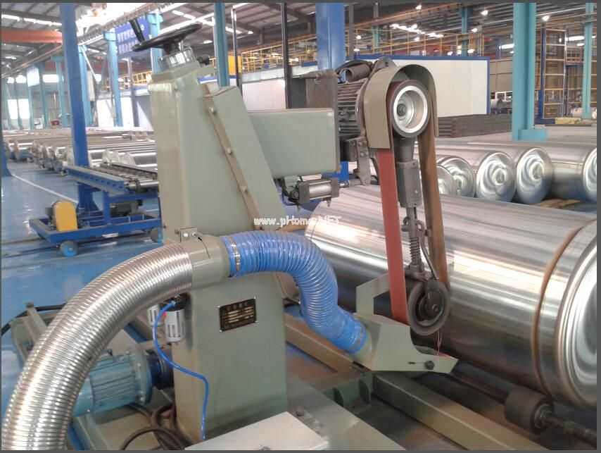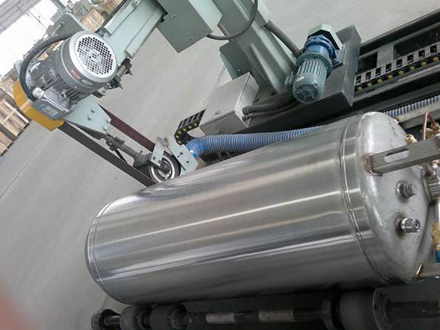 1. 以砂帶為磨具,針對工業(yè)罐體圓柱形筒體的構造特點,采用全程跟蹤恒壓力浮動磨削技術,實現(xiàn)筒體外表面均勻磨削拋光。