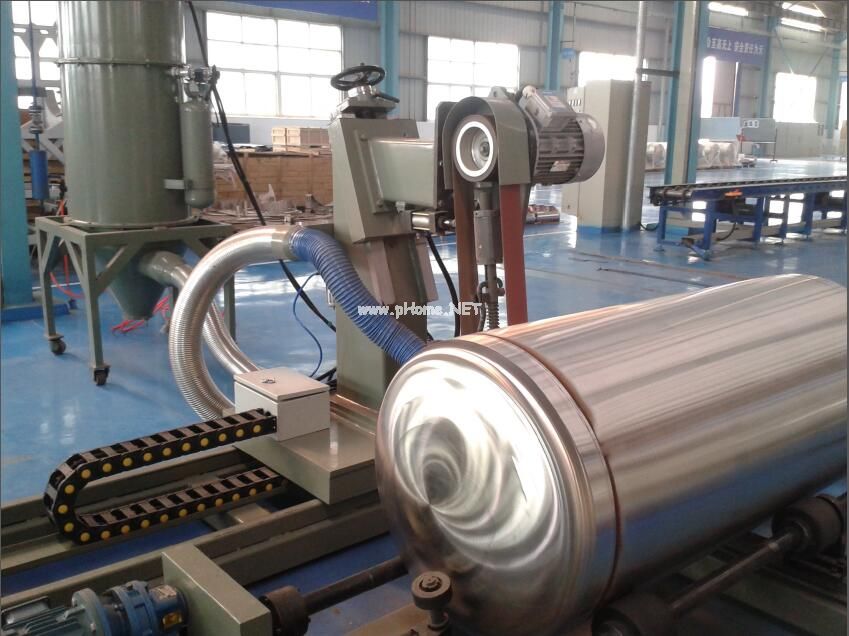 1. 以砂帶為磨具,針對工業(yè)罐體圓柱形筒體的構造特點,采用全程跟蹤恒壓力浮動磨削技術,實現(xiàn)筒體外表面均勻磨削拋光。