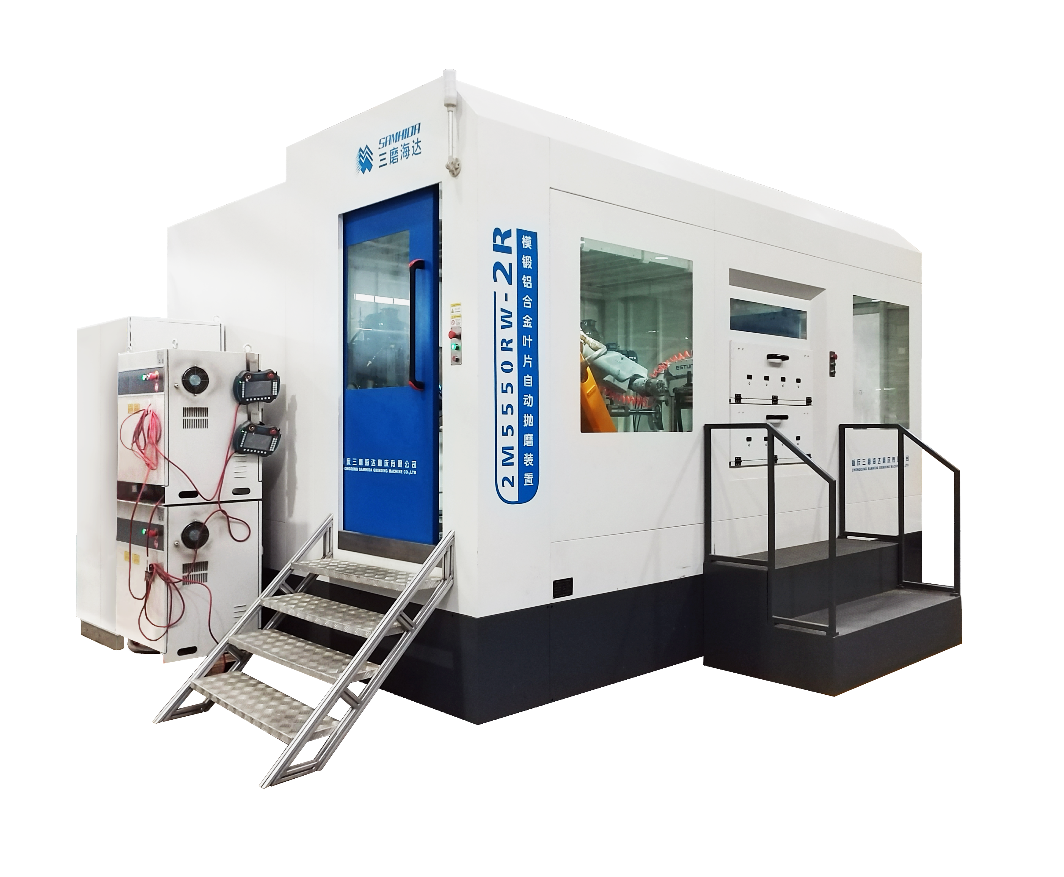 通過機械手一次裝夾工件在不同砂帶磨削工位上完成加工,并可通過快換功能實現(xiàn)批量加工。